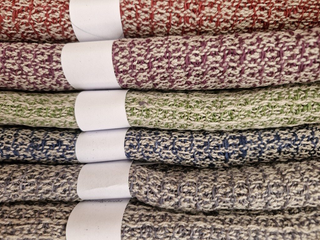 Es gibt nämlich neue Handtücher bestehend aus einer Kette aus Biobaumwolle und einem Schuss aus Leinen.
